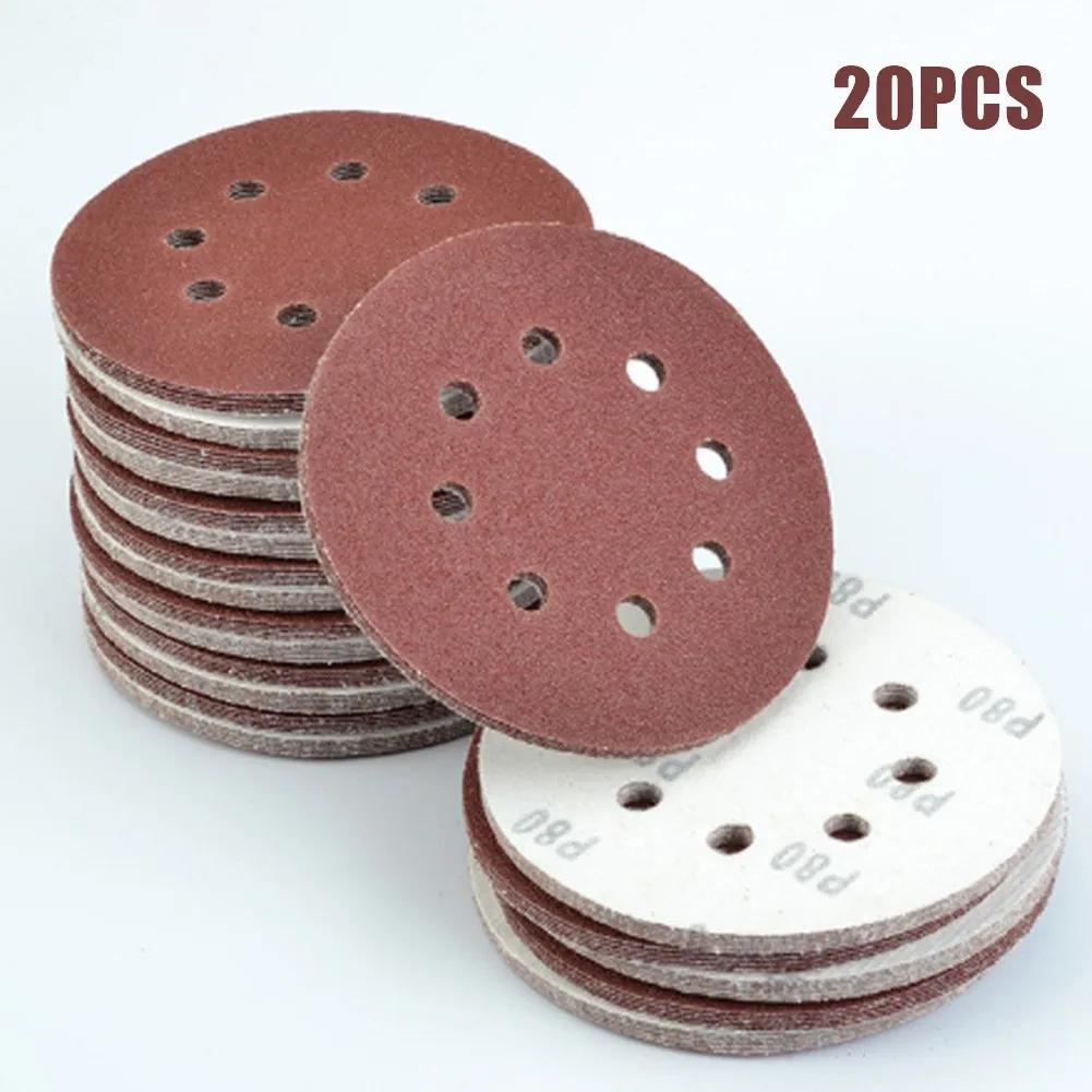 20pcs 5 Inch 125mm Round Sandpaper 8 Hole 60-2000 Grit Sanding Disc Pad Hook & Loop Grit For Drill Grinder Rotary Tools