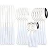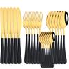 AJOYOUS Dinnerware Set Stainless Steel Mirror 24Pcs Tableware Western Knife Fork Spoon Flatware Cutlery Set Kitchen Silverware