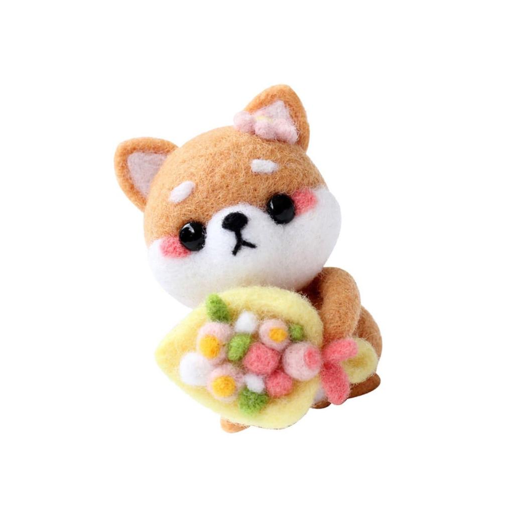 Needle felting kit for beginners: The cartoon sitting dog plush toy DIY kit consists of simple steps that even beginners can enjoy making, making it a suitable wool felting kit for those who are new to the craft.