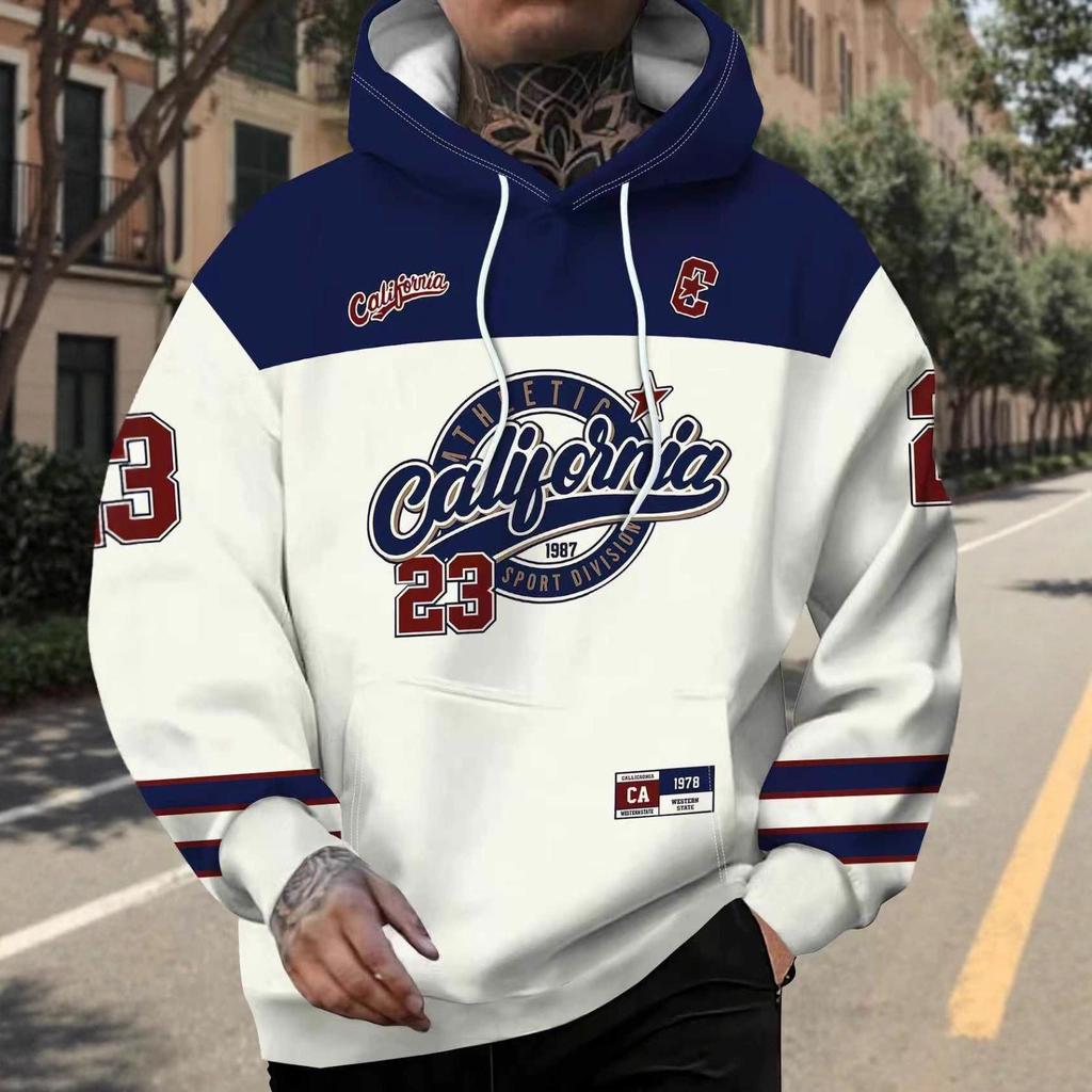 Podnieś poziom swojej codziennej garderoby dzięki tej męskiej bluzie z kapturem z nadrukiem 3D w stylu retro. Dzięki modnemu wzorowi color block w kolorach niebieskim i białym, ta bluza z kapturem jest idealna do odważnego podkreślenia stylu.. Wyróżniającą cechą jest jego wzór druku 3D, dodający dynamicznego i nowoczesnego charakteru. Wykonany z lekkiego poliestru, został zaprojektowany z myślą o komforcie, z luźnym krojem i długimi rękawami dla swobodnego stylu.. Stójka dodaje wyrafinowanego charakteru, a cienki materiał sprawia, że jest idealna do noszenia warstwowego w przejściowych porach roku.. Włókno poliestrowe nadaje mu miękkie i trwałe wykończenie, zapewniając, że jest równie funkcjonalny, co stylowy.