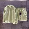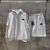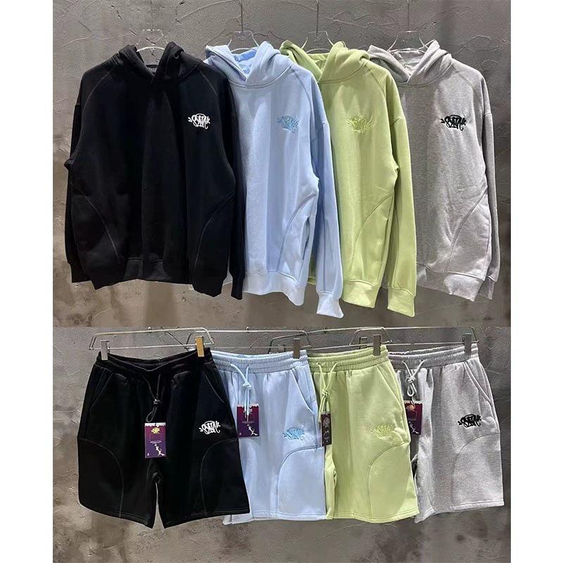 Odkryj styl streetwear dzięki temu uniseksowemu zestawowi welurowej bluzy z kapturem i szortów, ozdobionemu skomplikowanym haftem hip hopowym.. Zestaw zawiera dekolt stójkę i długie rękawy, wykonany z cienkiej, oddychającej bawełny dla lekkości i komfortu.. Unikalny wzór dodaje modnego charakteru, dzięki czemu jest idealny na codzienne wyjścia.