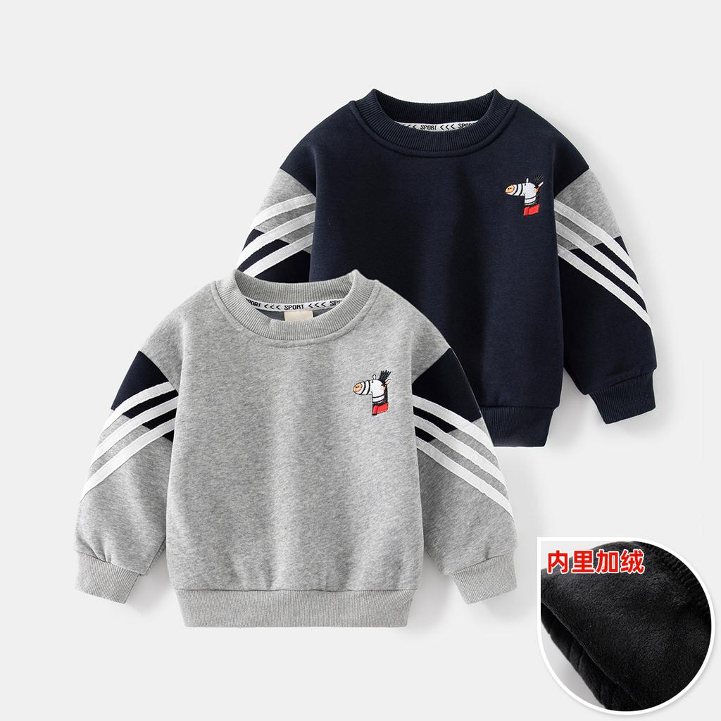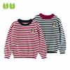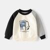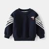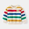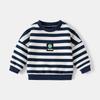 Autumn and winter boys round neck cartoon printed long-sleeved sweater, casual white striped warm pullover sweater