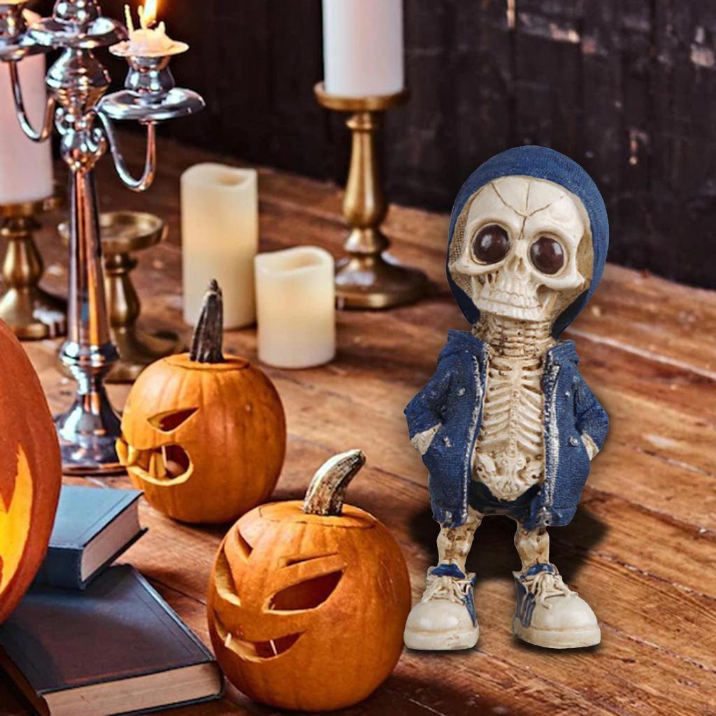 - 【Resin Material】Halloween Skeleton with Hoodies figurines are made of resin, environmentally friendly, lightweight, hand painted