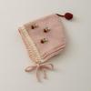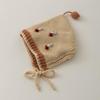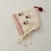 Koreańska Ręcznie Robiona Czapka Beanie z Wiązaniem Wiśniowa: Ciepła dzianinowa czapka wełniana z ochroną uszu dla małych dziewczynek