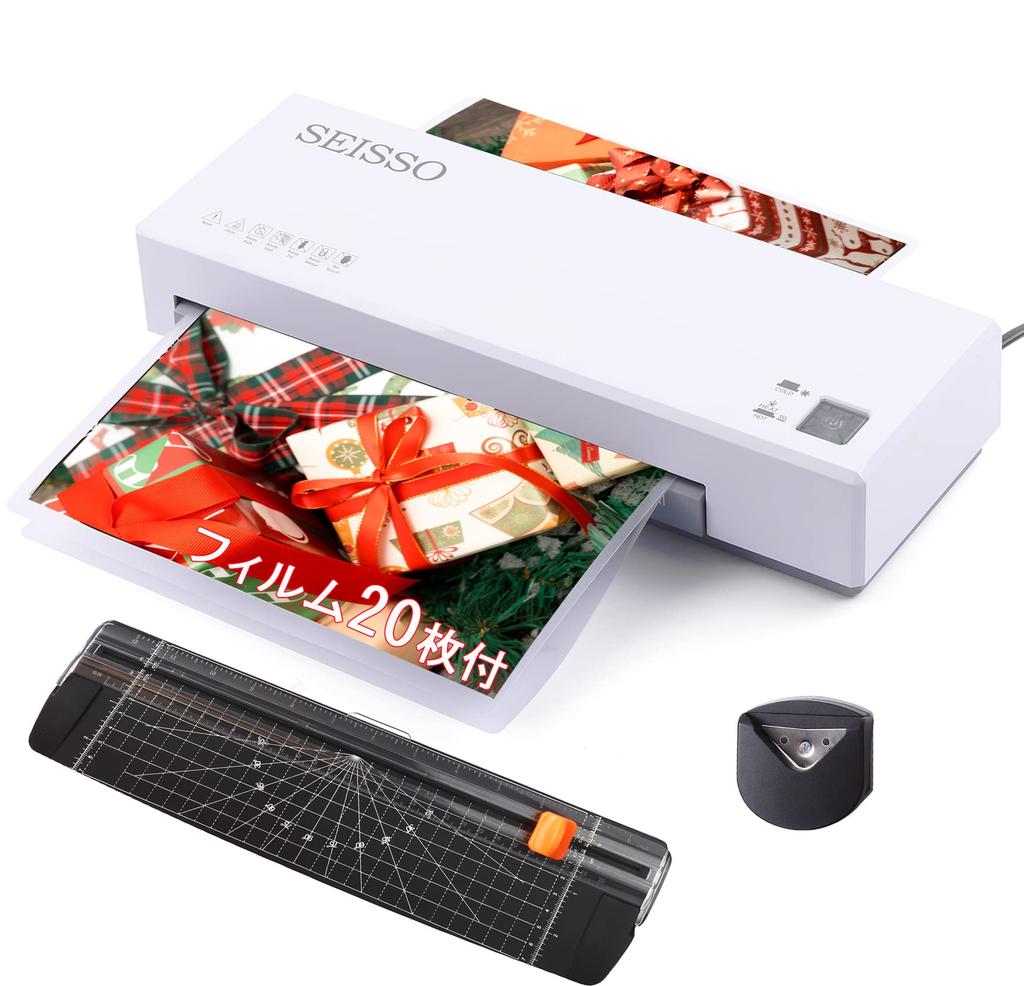 [Includes a paper cutter and corner cutter + 20 sheets of film] The included cutter allows you to cut paper to the size you need. It also comes with a convenient corner punch, which smooths out sharp corners for safety. It's also easy to use when making notebooks. It also comes with 20 sheets of film for thermal lamination, making it practical.