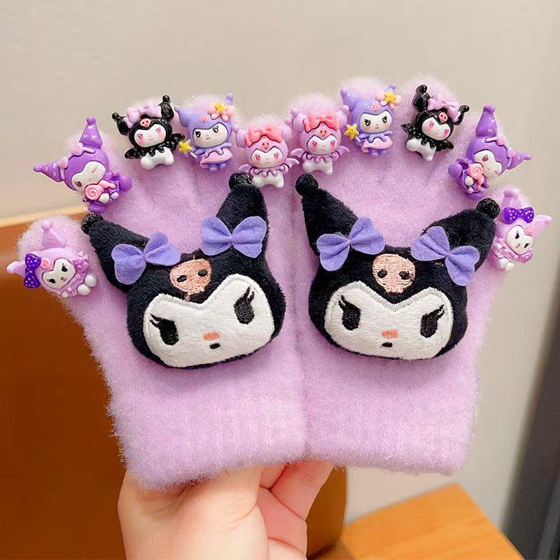 Dziecięce zimowe rękawiczki w stylu kreskówkowej księżniczki z rozdzielonymi palcami - Urocze, ciepłe, pluszowe dla dziewczynek