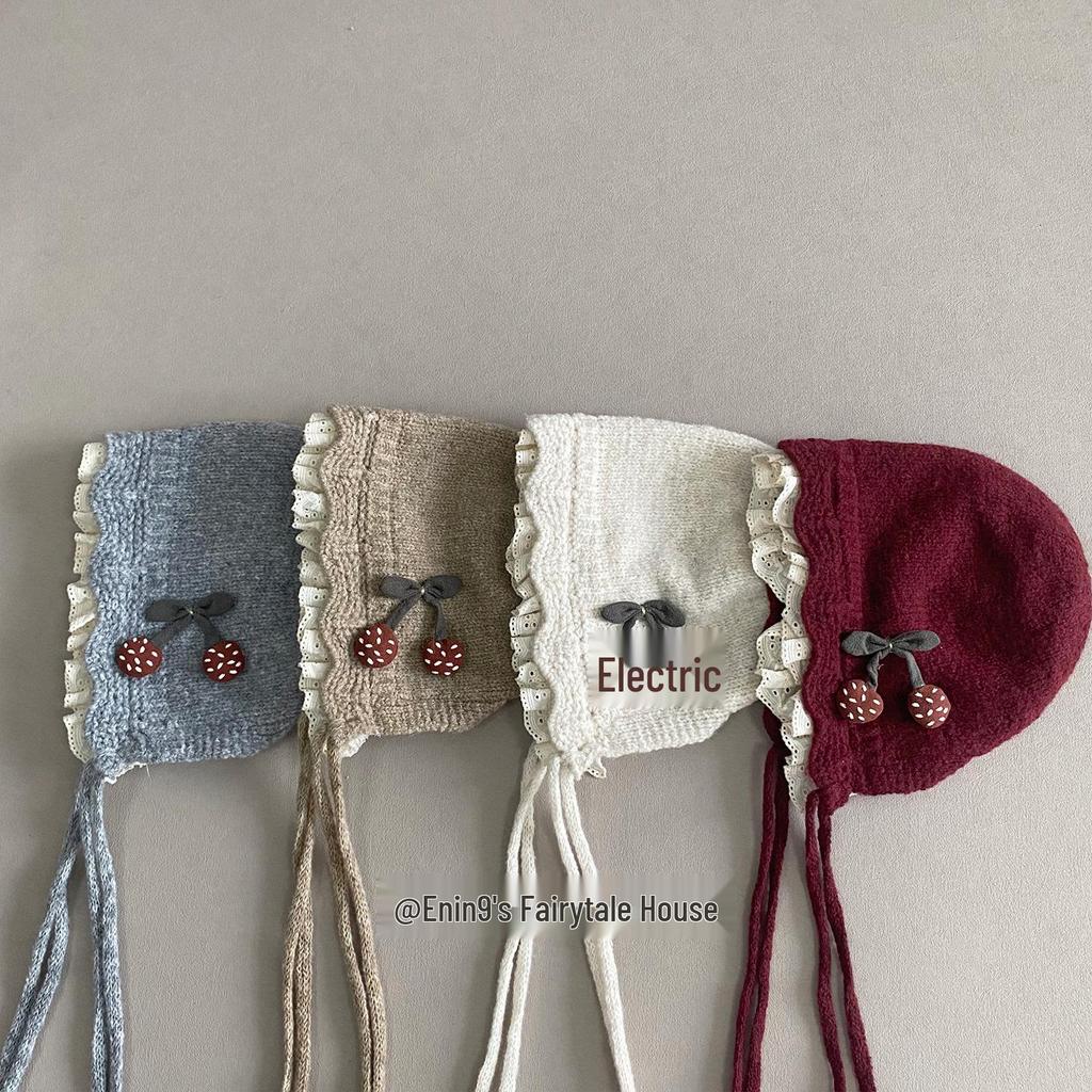 Czapka zimowa z nausznikami i koronkowym wykończeniem dla dziewczynek - Ciepła wełniana czapka zimowa dla maluchów