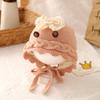 Jesienno-zimowa urocza dziergana wełniana czapka dla małych dziewczynek z ochroną uszu