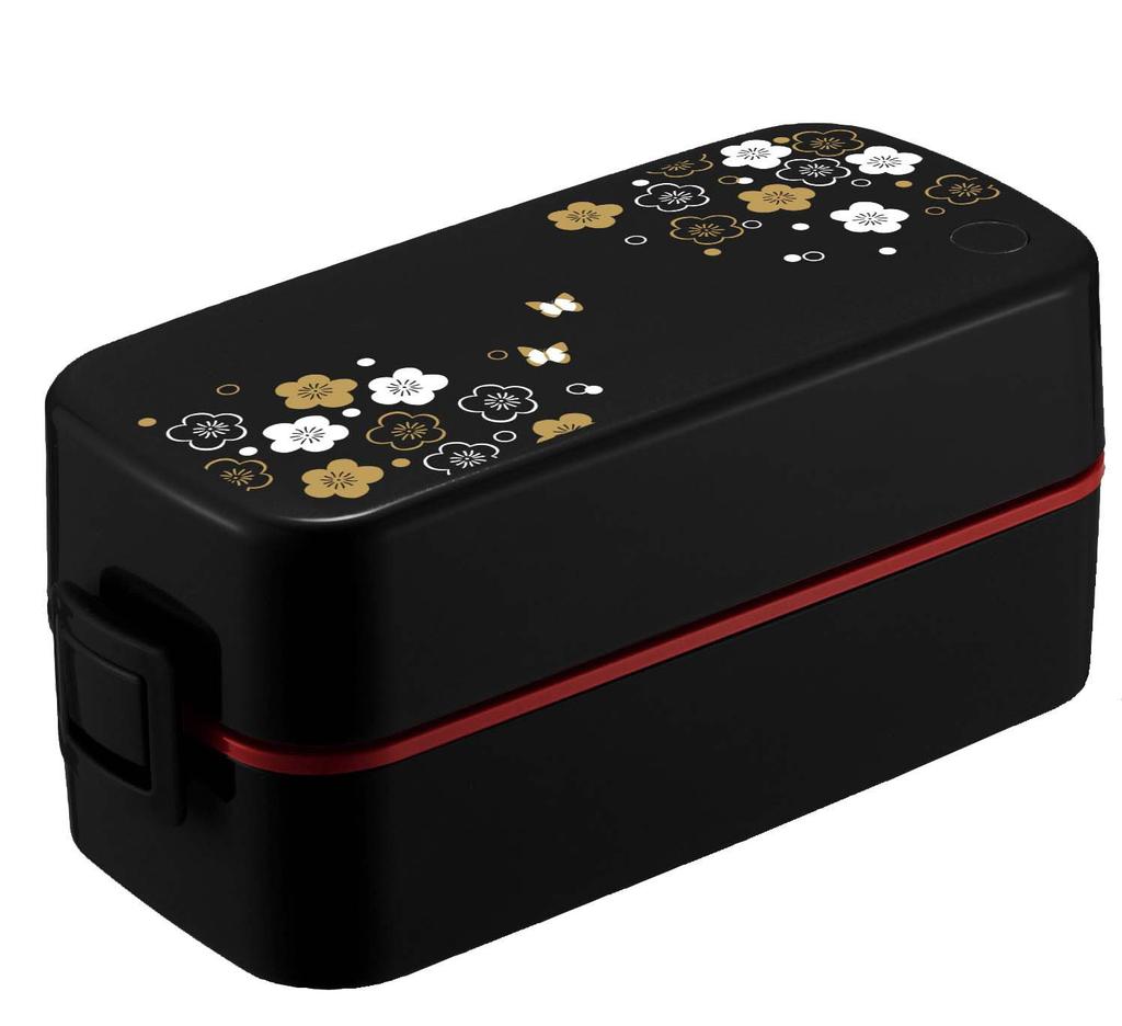 Pojemnik na lunch Asvel z motywem śliwy "Lantas", dwupoziomowy, czarny, SS-T620
