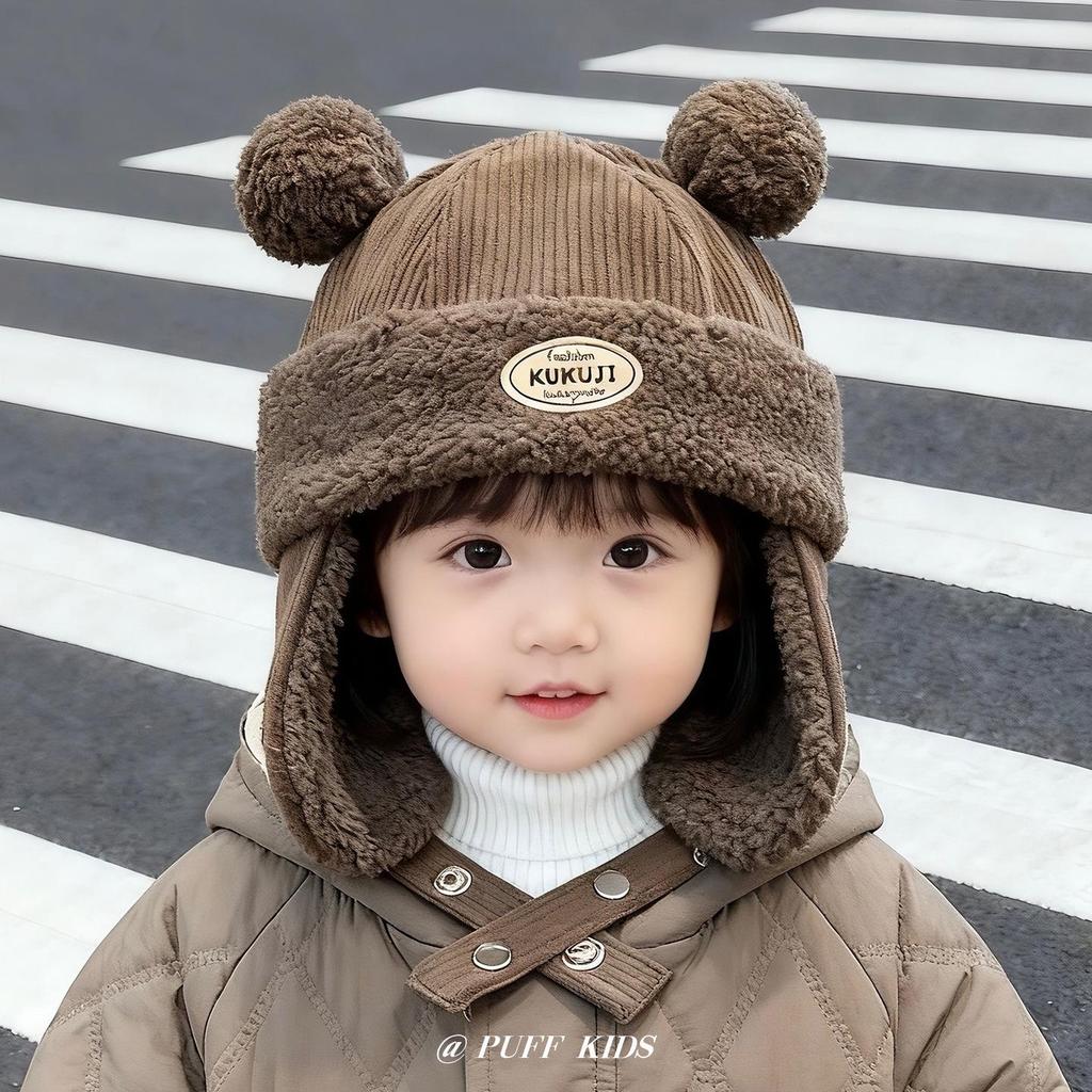 Children's Winter Hat with Fleece Lining, Windproof Corduroy Design, and Lambswool Ear Protection