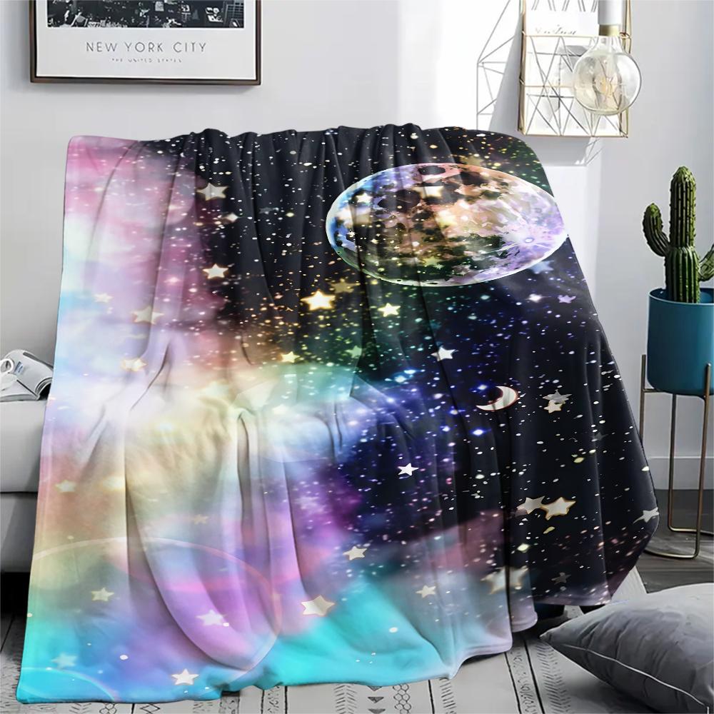 1Pc Galaxy Moon Print Flannel Blanket, High quality Comfortable for All Seasons, Home Decor, Warmth and Comfort, Perfect for Gifts