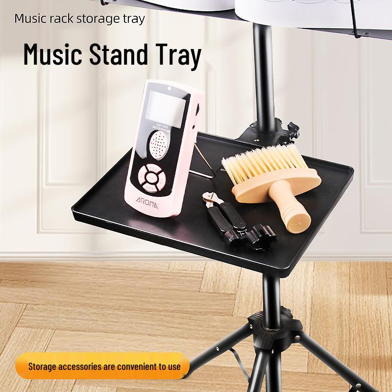 Regulowany stojak muzyczny z uchwytem na nuty, miejscem na telefon, metronomem, kartą dźwiękową i półką na akcesoria