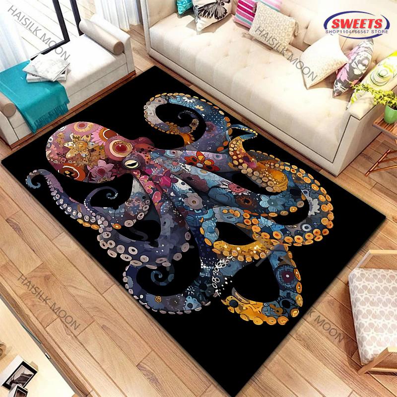 Dywan z nadrukiem o tematyce ośmiornicy olbrzymiej Nowość! Wytrzymałe do salonów, sypialni, biur, trwałe maty do prania w pralce