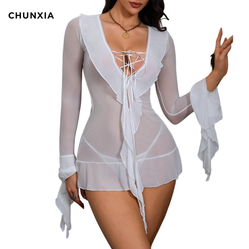 Nowe seksowne piżamy z siateczki mogą być noszone na zewnątrz jako koszule nocne dla kobiet