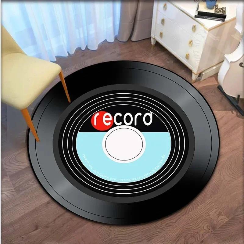 Płyta CD z wzorem muzycznym Okrągły dywan Retro Mata podłogowa Dekoracyjny dywanik do salonu sypialni Antypoślizgowy Dywanik podłogowy do wypoczynku Dywanik do strefy mody
