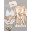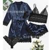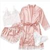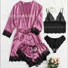 Elastyczny satynowy nowy seksowny komplet bielizny czteroczęściowy, komplet spódniczki z pasem do pończoch, odzież domowa wielokolorowy