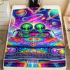 1 szt. Koc flanelowy z nadrukiem UFO i kosmitów, Wysokiej jakości, Wygodny na wszystkie pory roku, Wystrój domu, Ciepło i komfort, Idealny na prezenty
