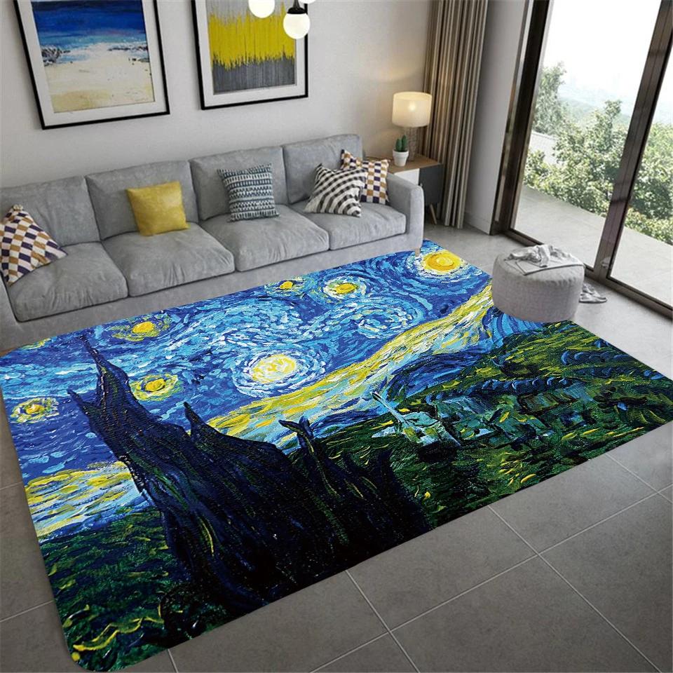 Starry Sky Carpet Van Gogh Art Painting Bathroom Rugs Non-slip Bedroom Mats Welcome Mat Floor Decorative Carpet for Living Room