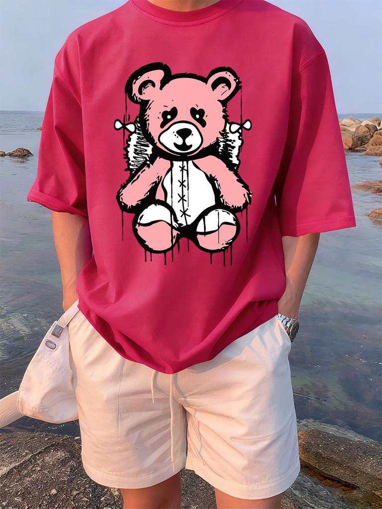 Cartoon Bear Preparing To Rest Prints TShirts Womens Summer Cotton Tops ONeck Comfortable Loose Short Sleeve Casual Clothes