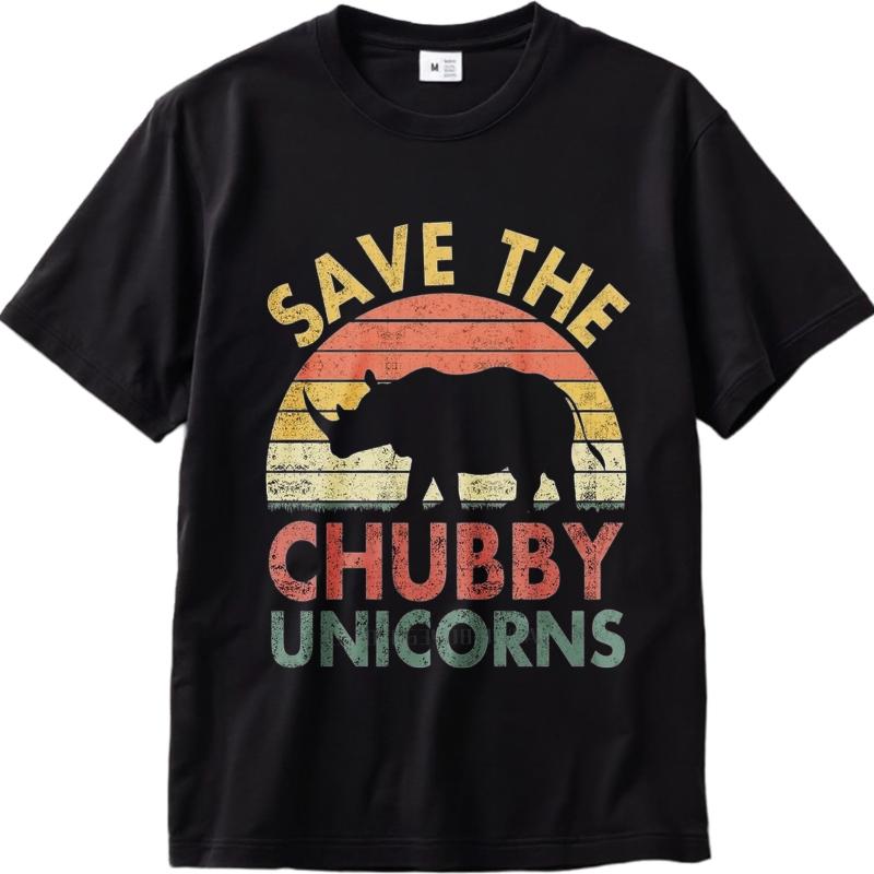 Vintage letni męski t-shirt Save The Chubby Unicorns Krótki rękaw Z nadrukiem Okrągły dekolt T-shirt męski bawełniany t-shirt modne topy