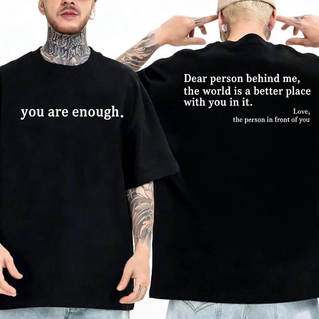 Summer Men Tshirts Dear Person Behind Me You Are Enough Print Tshirts Fashion Sweatshirt Hip Hop Casual Unisex Men Clothing