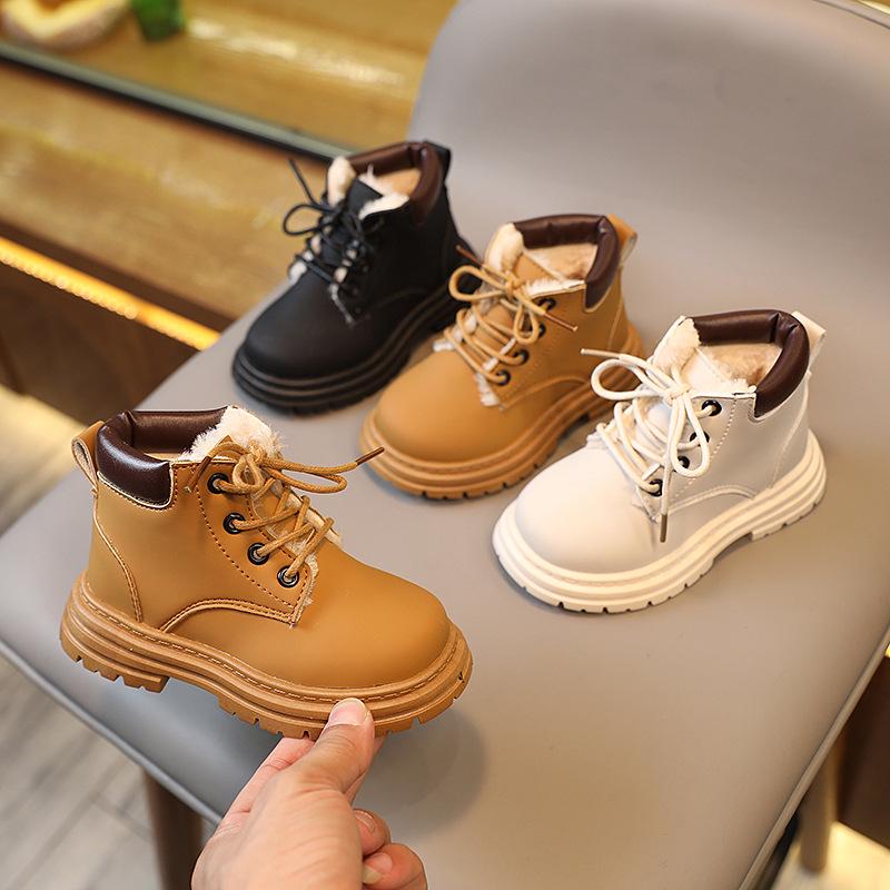 Kids' Fleece-Lined Martin Boots: Boys' and Girls' Autumn/Winter British-Style Yellow Cotton Boots