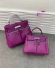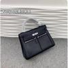 New first-layer cowhide KL bag women's double pocket capacity large handbag commuter shoulder messenger bag