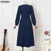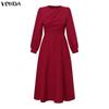 Features:Woven Fitted X line Crew Neck Ruffled Lantern Sleeve Long Dress