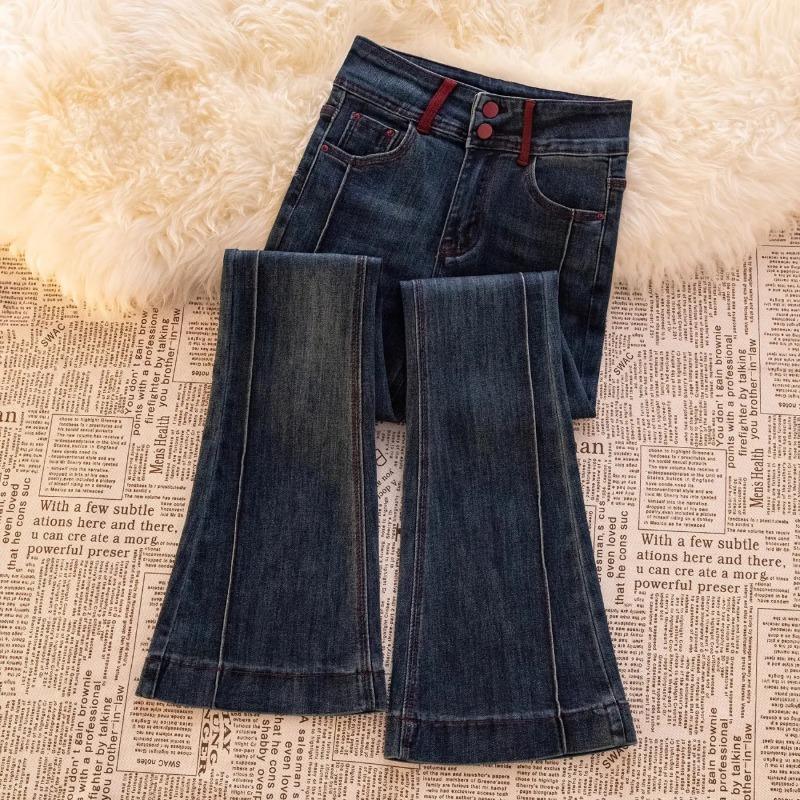 Damskie Retro Spodnie Dzwony Spodnie Jeansowe High Waist Rozciągliwe