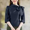 ZANZEA Damska casualowa elegancka bluzka z kołnierzykiem i kokardą, rękaw 3/4