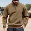 Men's Khaki Half-Zip Pullover Sweatshirt with Contrast Shoulder Patch