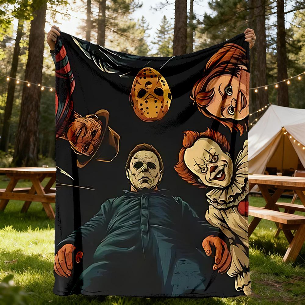 1pc Horror Icons Outdoor Blanket Lightweight Flannel, Soft & Warm, All Season Use for Sofa, Outdoor, Camping, Living Room, Office, Chair
