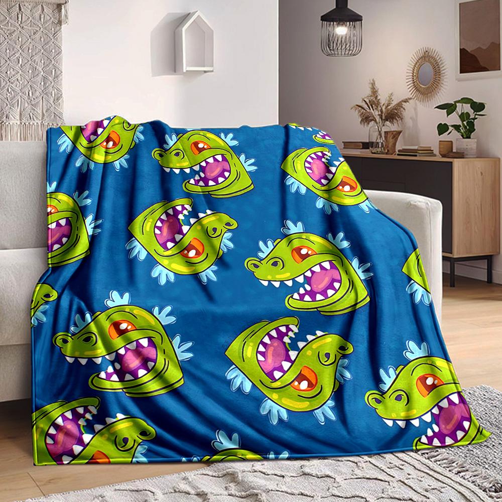 1pc Dino Rugrats Flannel Throw Blanket HD Printed Lightweight Soft Warm All Season Blanket for Sofa, Bed, Travel, Camping Machine Washable