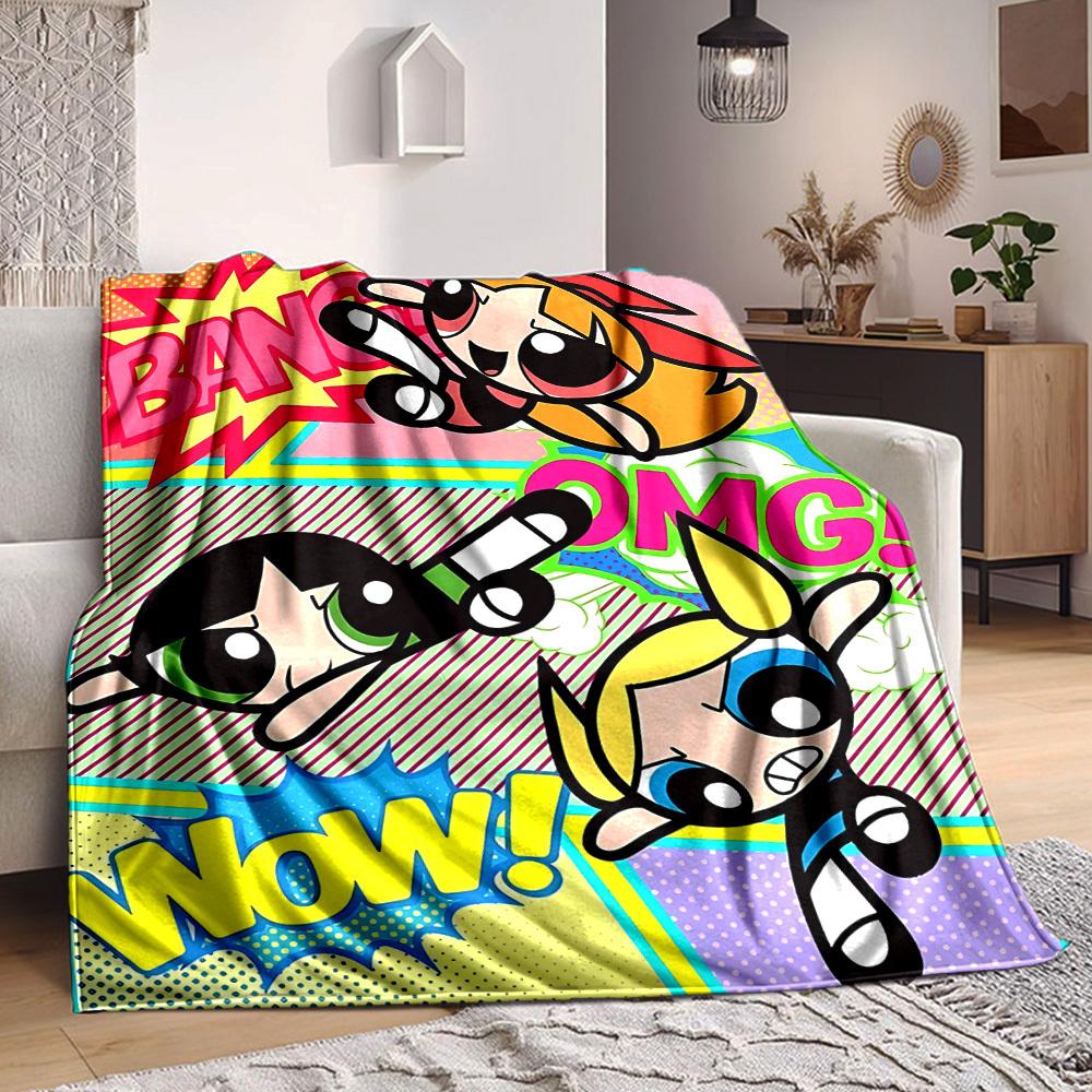 1pc Powerpuff Girls Cozy Print Blanket Lightweight Warm Flannel Throw Blanket For Sofa, Bed, Living Room