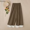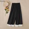 ZANZEA Women Casual Elastic Waist Loose Ruffled Lace Hem Wide Leg Pants Long Trousers