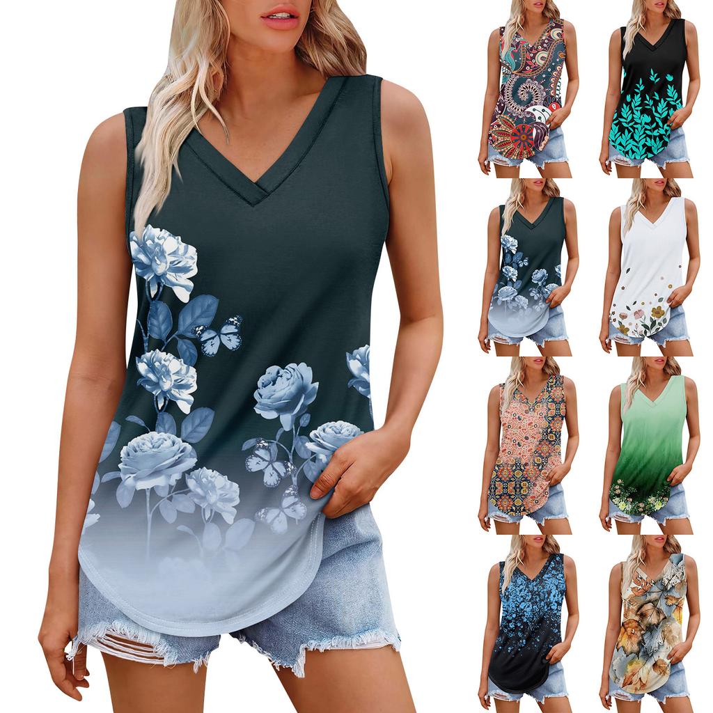 Women's Girl V Neck Tank Top Printing Casual Top Tank Tops For Women Loose Fit Sleeveless Tops Flowy