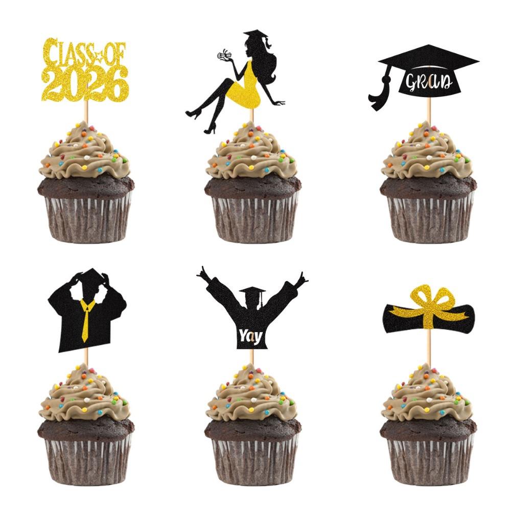 24 szt. Toppery do babeczek na zakończenie szkoły 2026 Błyszczące 6 stylów Dekoracja tortu imprezowego Wielokrotnego użytku Wykałaczki do babeczek Impreza z okazji ukończenia szkoły