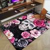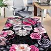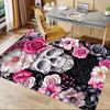 1PC Skull and Flowers Flannel Blanket Carpet Ultra Soft, Thick & Absorbent, Non Slip Machine Washable Mat for Entryway