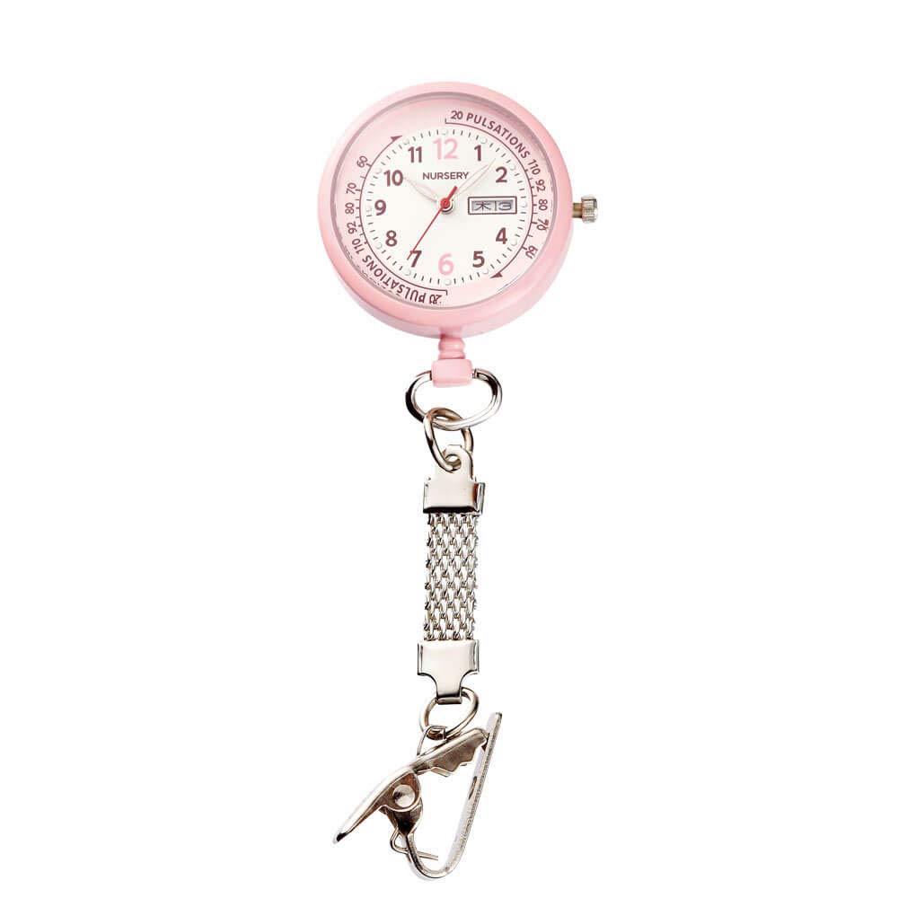 Nursery Watch with Date and Day Short Chain Inverted Pulse Luminous Pale Nurse Accessories Display, (NEW) - Dial, Meter, Pink, 1109268A,