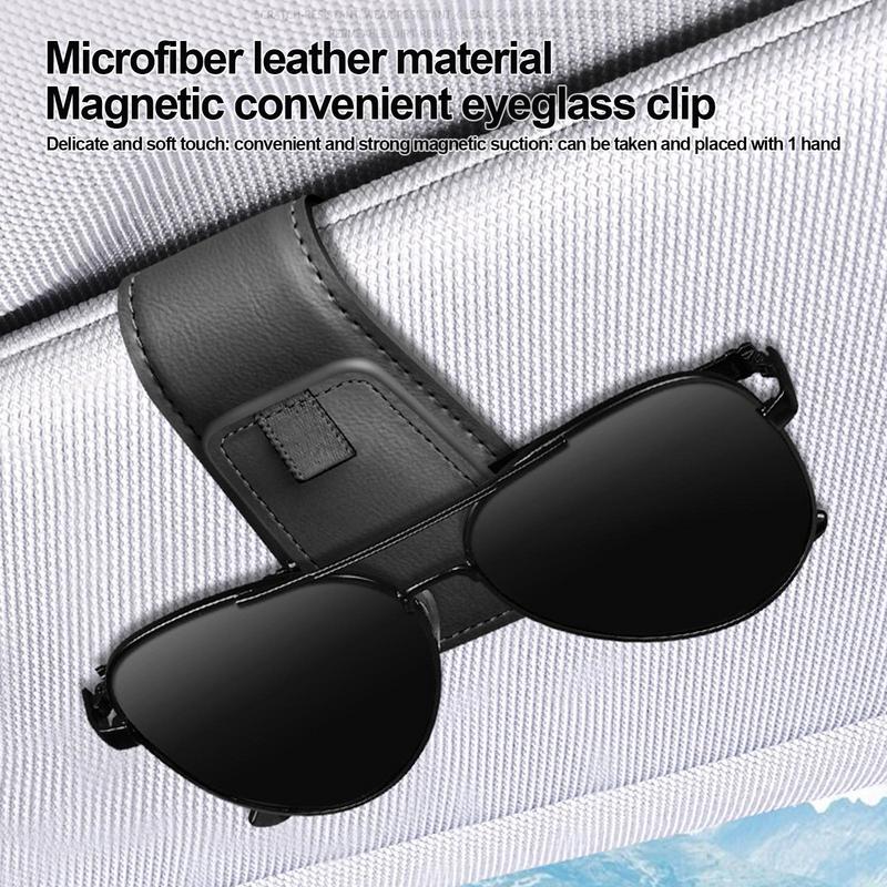 Magnetic Car Auto Sun Visor Eyeglass Hanger Clip Leather Glasses Holder Universal Multi-Function Automobile Accessories Storage