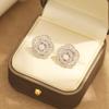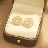 New delicate diamond-encrusted trapezoidal zircon rose earrings gold-plated two-tone earless ear clip floral earrings for women