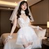 Sexy Lingerie Sexy Lace Mesh Transparent Wedding Dress Sexy Deep V Hollow Out Tempting Low Cut One-piece Bride Uniform Tempting