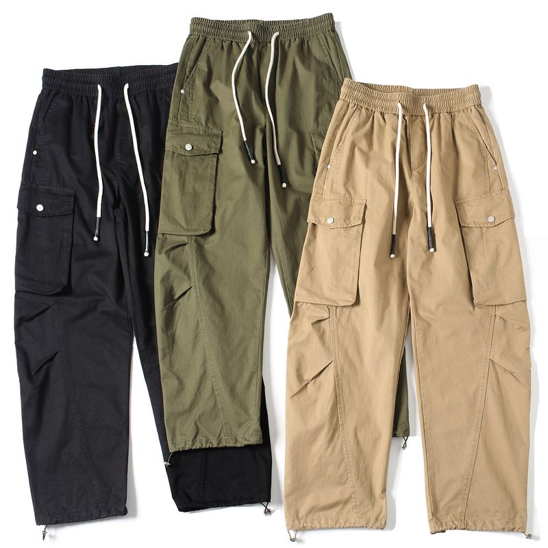 Foreign Trade Japanese-Style Work Pants for Men, Autumn American-Style Multi-Pocket Pure Cotton Jogger Pants, Loose Wide-Leg Casual Long Pants