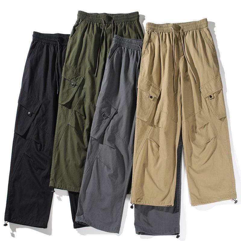 Original Foreign Trade Japanese Retro Washed Cotton Work Pants for Men, Spring and Autumn, Large Pockets, Straight Loose Wide-Leg Casual Pants