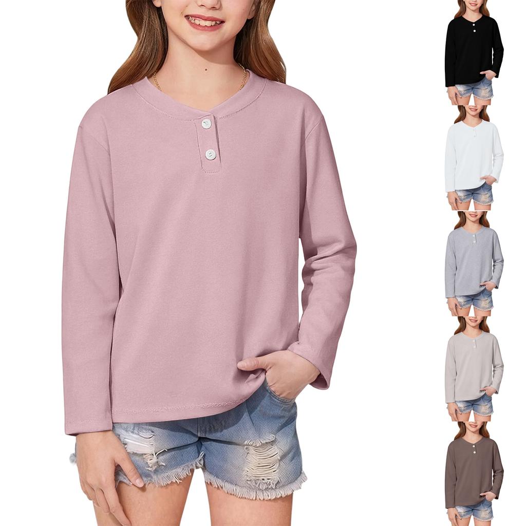 Children's Long Sleeved T-shirt With Round Neck Button Fashion Top