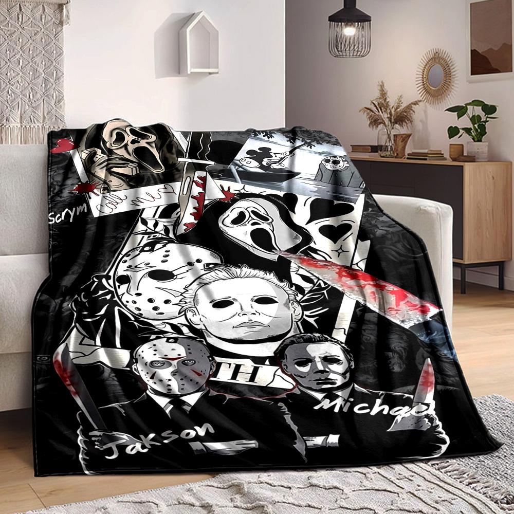 1pc Horror Movie Characters Blanket Soft All Season Throw with Vibrant Design, Perfect for Home, Travel, and Gifts, Ideal for Naps and Camping