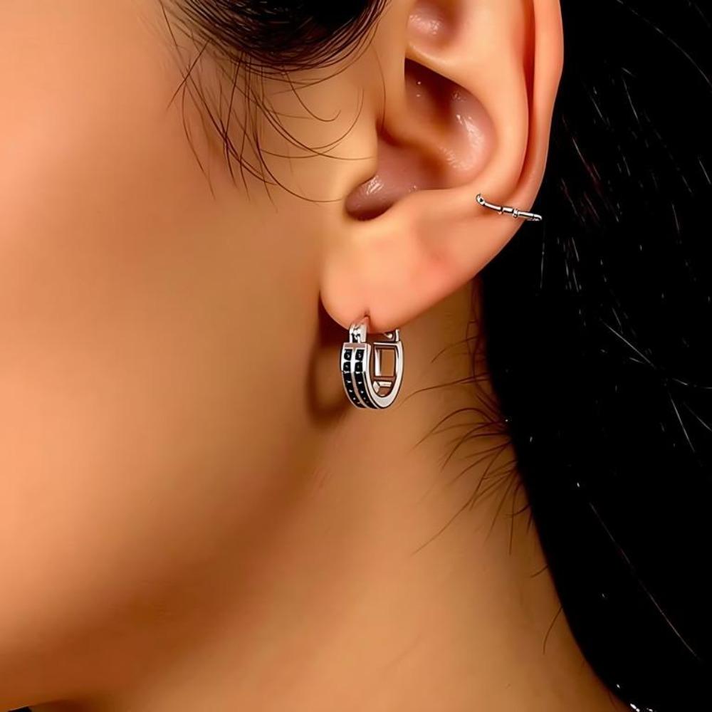 Para miedzianych kolczyków | Kolczyki koła Shadow Square z podwójnym rzędem czarnych kamieni, Eleganckie i luksusowe na co dzień i na specjalne okazje