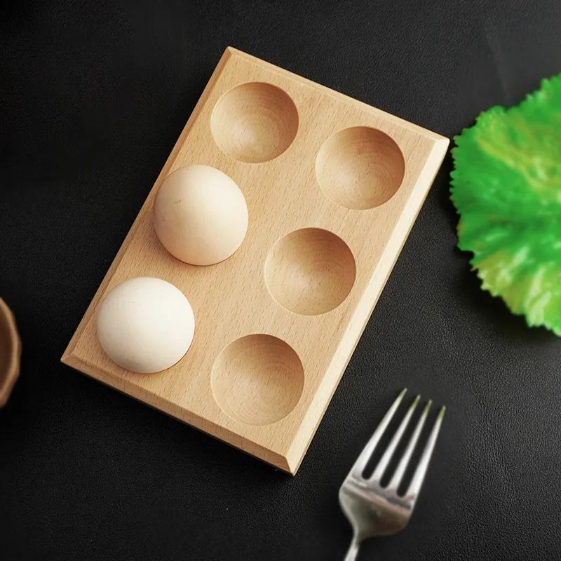HeMu Solid wood four-grid egg holder simple six-grid creative handmade decoration refrigerator breakfast egg storage box