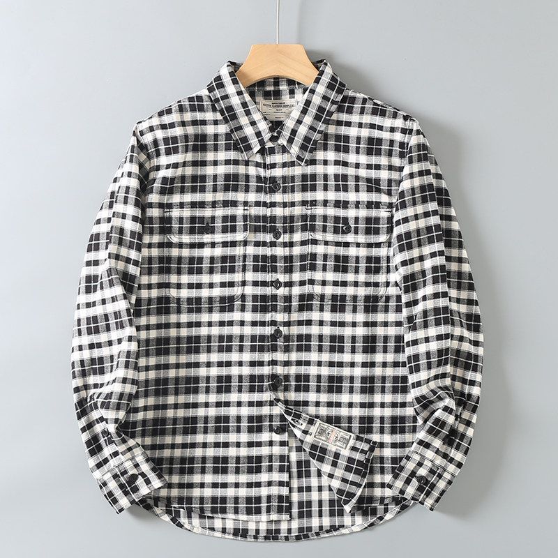 American Retro Brushed Plaid Casual Shirt, Export Cut Label Men's Trendy Workwear Long-Sleeve Shirt Jacket