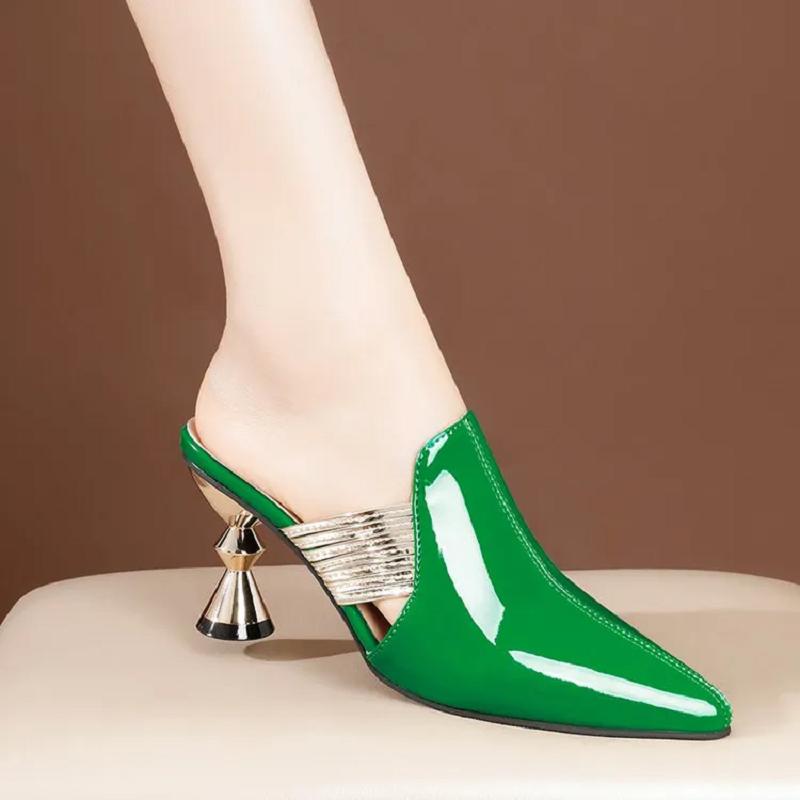 Zapatos De Mujer Women Classic Wine Red Peep Toe Patent Leather Slip on Square Heel Shoes Lady Black Sandals A1168